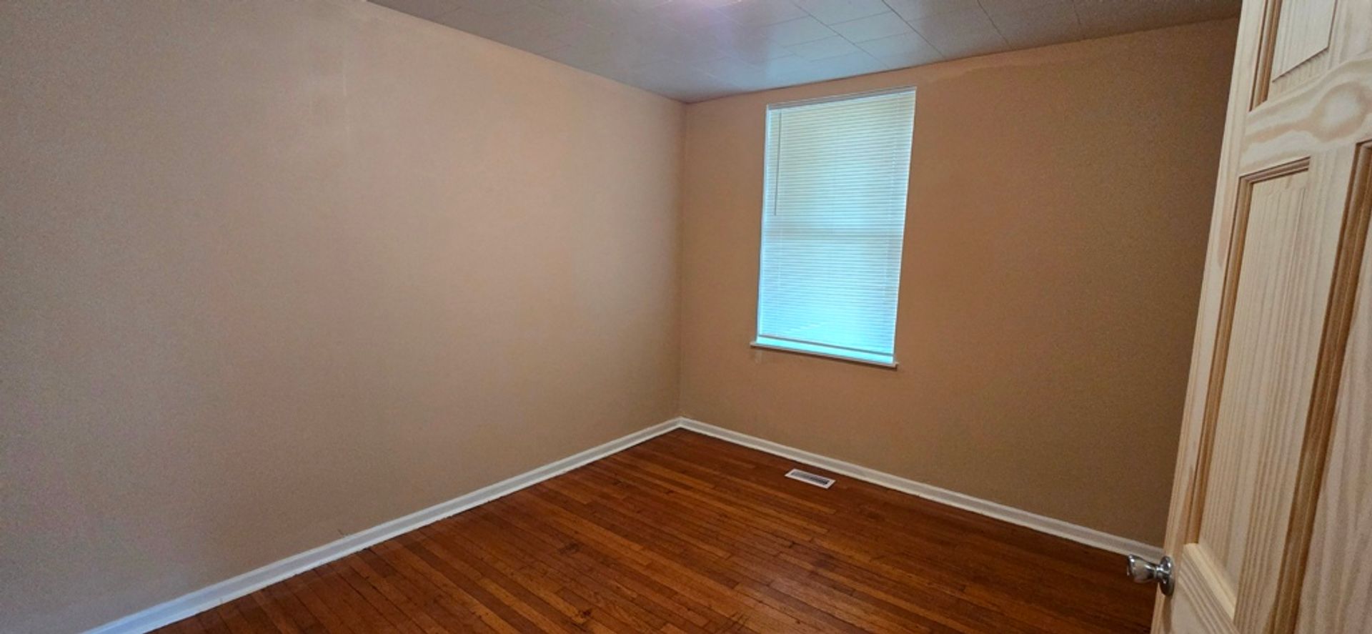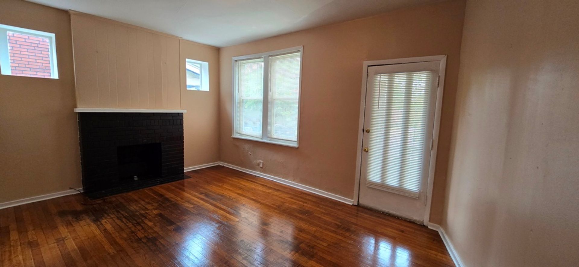 Features: 2 bedrooms, 1 bath, central air, gas heat, hardwood floors, decorative fireplace, refrigerator, gas stove, washer/dryer hookups (gas and electric), off-street parking, full unfinished basement.