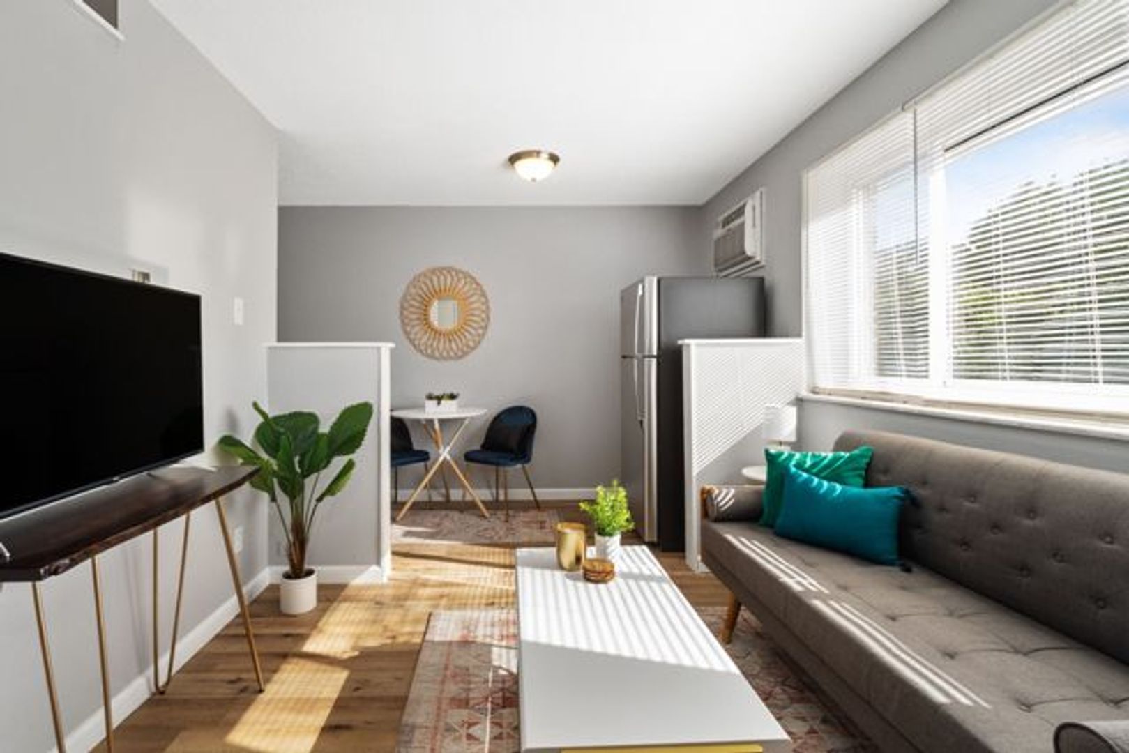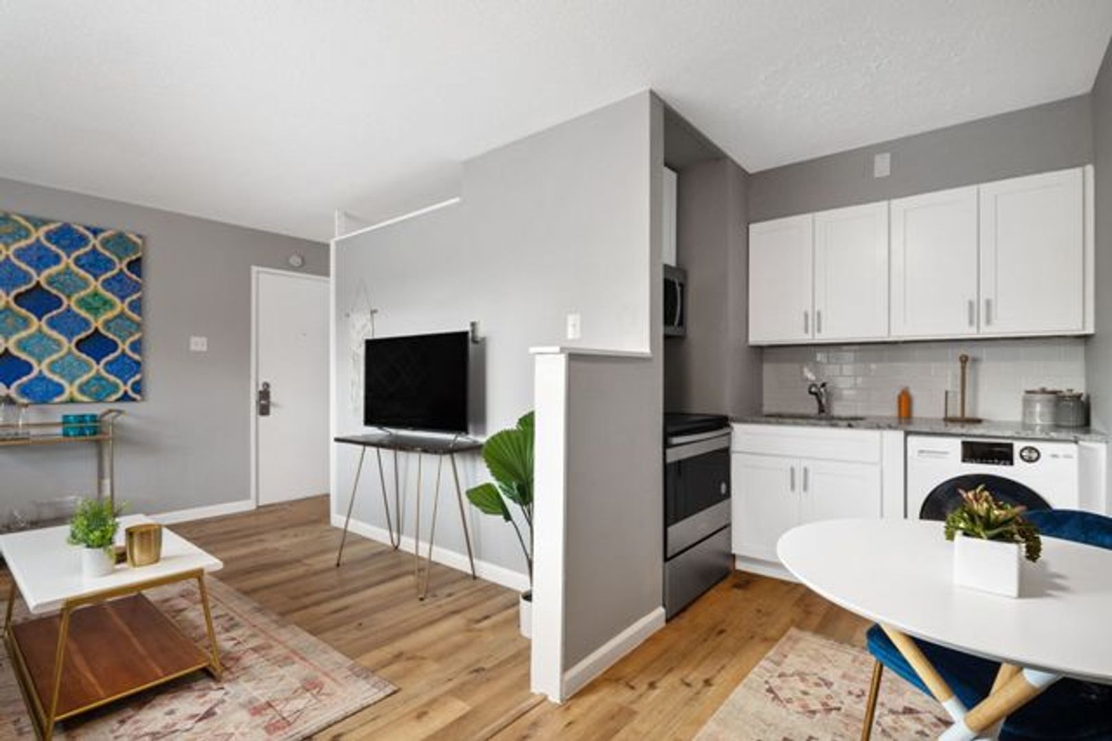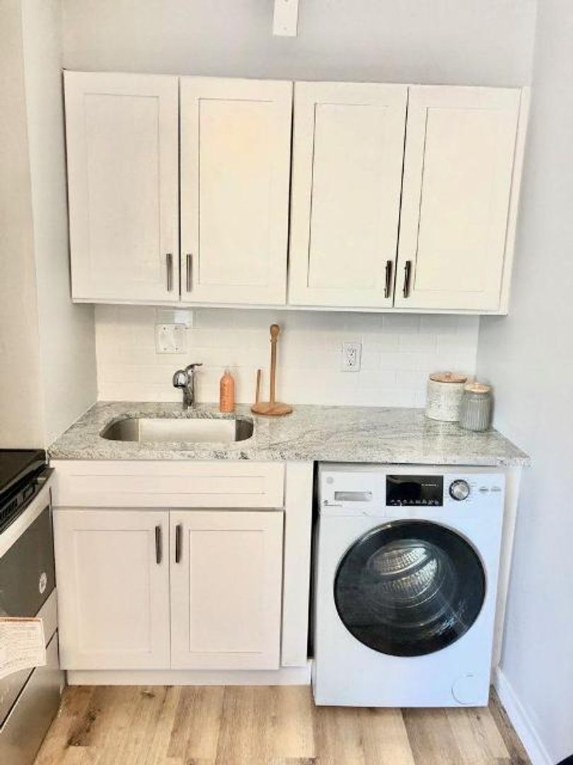 Fashionable and efficient, these convertible one bedroom all-electric units feature stainless steel appliances (refrigerator, stove, microwave), new light wood plank flooring, as well as in-unit washer/dryer combo. The kitchen and bath are outfitted with custom white shaker cabinets and premium white and gray granite.