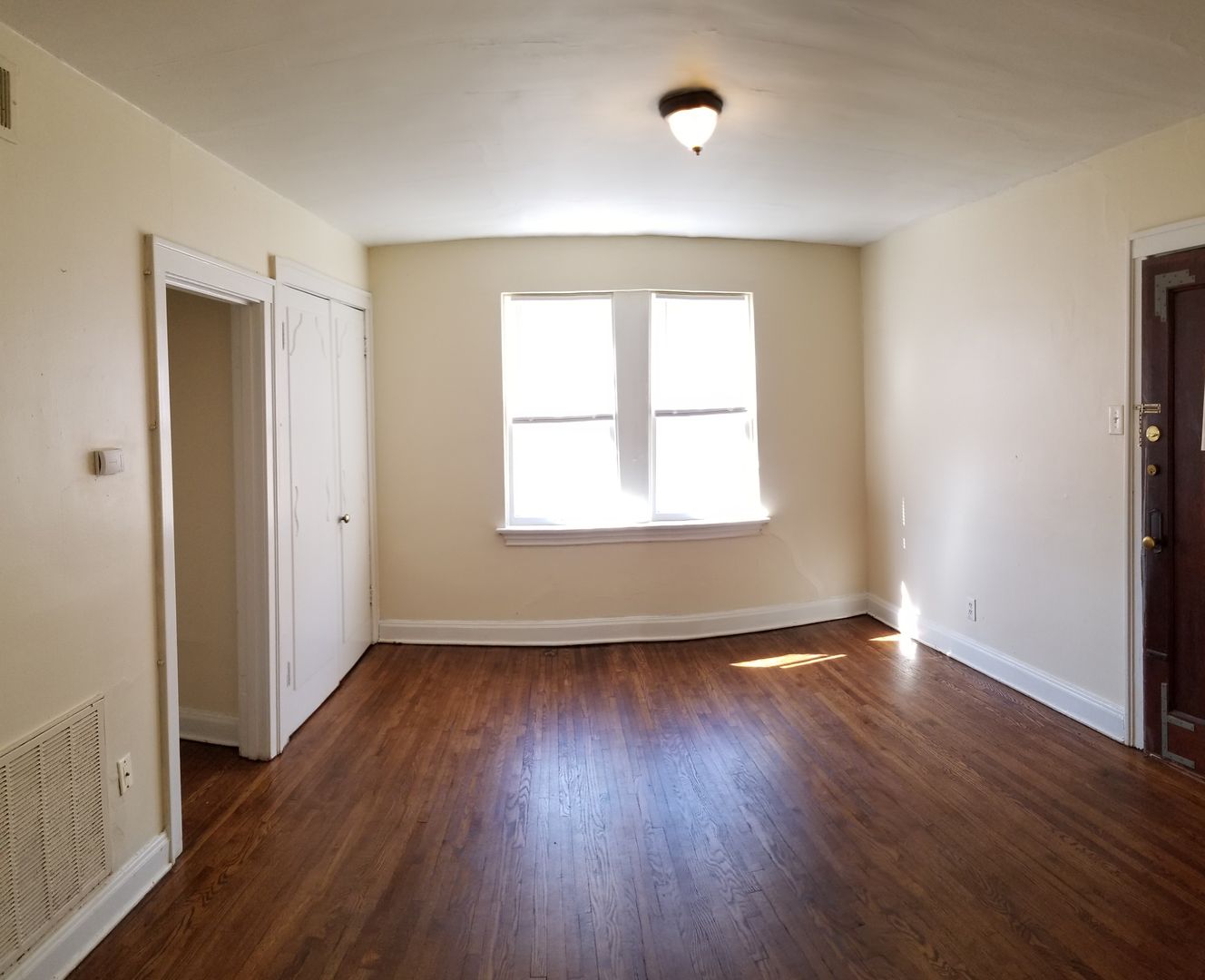 Hardwood floors, central air, hot water included, coin op laundry on site.