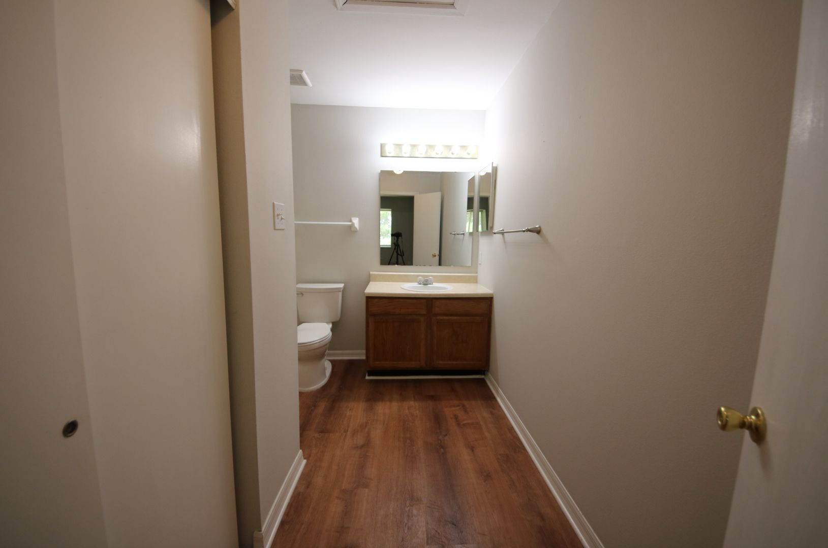 Central air, wood burning fireplace, new laminate flooring, no basement.