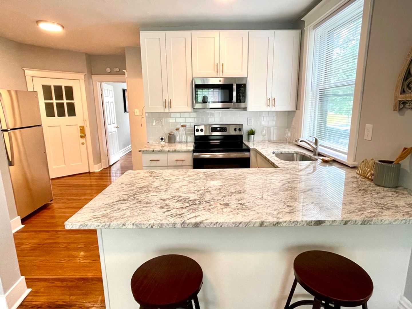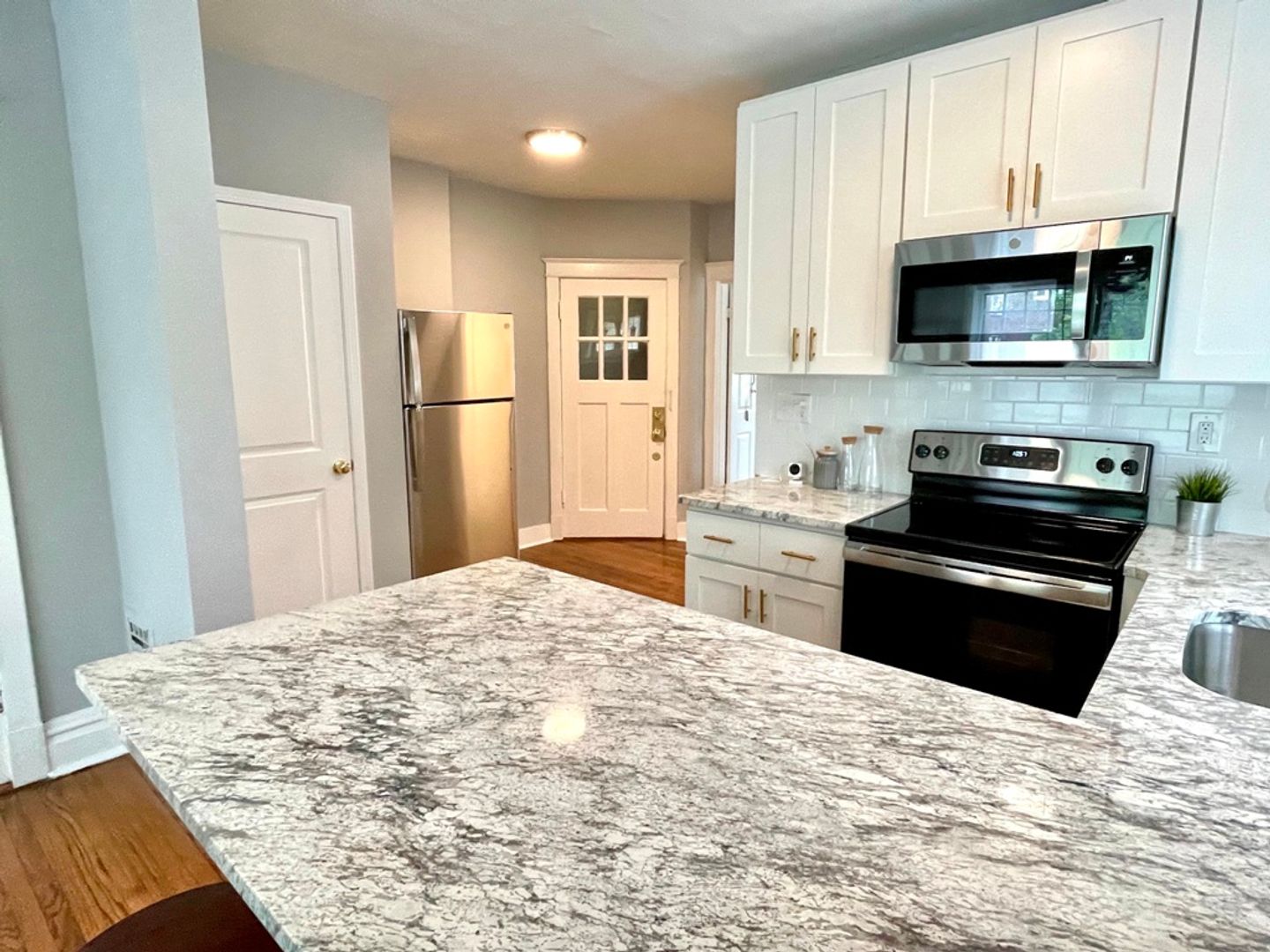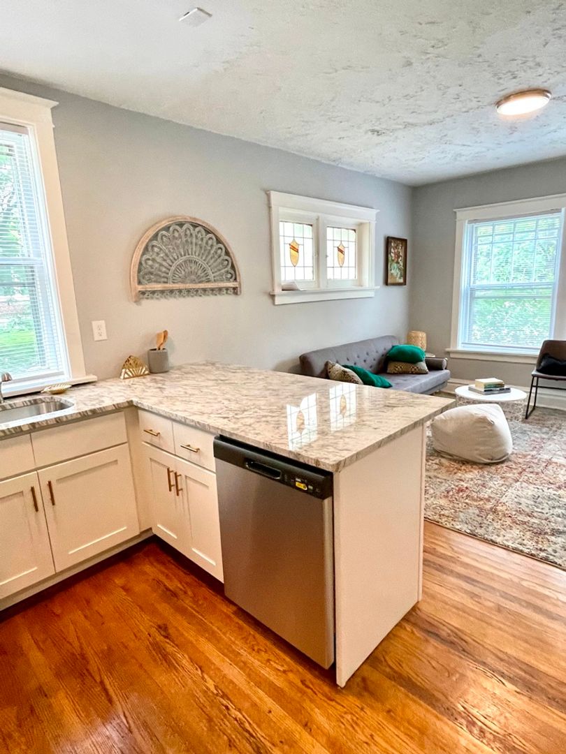 Newly renovated 4-unit building in the heart of Southwest Gardens that includes WASHER/DRYER IN-UNIT. Each unit features an open concept living/kitchen space, hardwood floors throughout, beautiful original stained glass windows, a bright white kitchen with a peninsula bar area for stools, and brand new appliances (refrigerator, range, dishwasher and microwave) with custom granite countertops. Street parking only. This is a large one bedroom unit that can fit a king bed. This is one of the best neighborhoods in St. Louis, walkable to Tower Grove Park, the Botanical Gardens, entertainment and a quick 5 minute drive to Central West End, Forrest Park, downtown, the Grove and more!