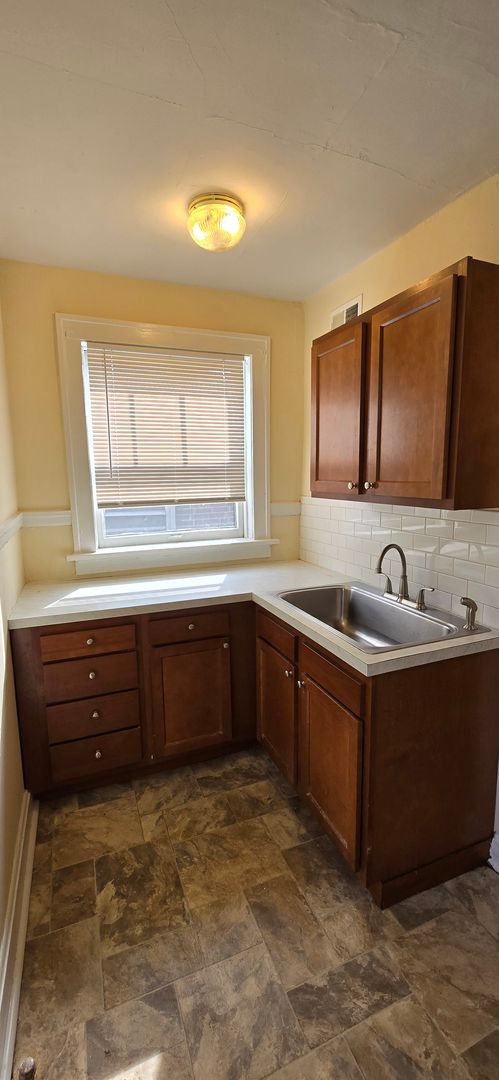 Beautifully refinished hardwood floors, newly remodeled kitchen, balcony, (1) window a/c unit, washer/dryer hook-ups in the basement.